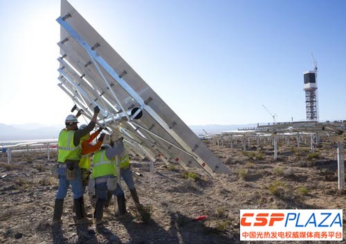 圖:工(gong)人正在(zai)按照(zhao)定日鏡系統
