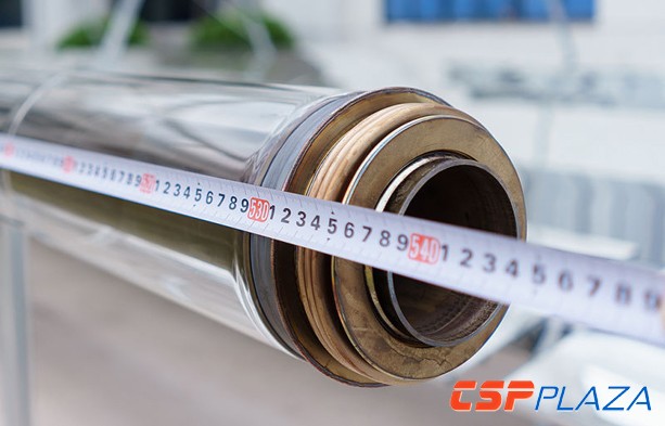更大尺寸的集熱管是集熱管技術發展的一大方向,其開發目標是進一步降低集熱場的整體成本。但集熱管的尺寸增大,其聚光比將相對減小。因此,增加集熱管尺寸,適配集熱器的尺寸也需隨之增大。龍騰此款集熱管的尺寸設計將可匹配其最新研發的大開口槽式集熱器,但這種新型集熱器設計目前尚未最終定型。