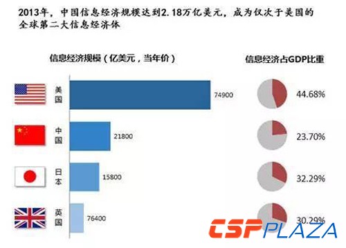 與“十(shi)(shi)二五”相比,“十(shi)(shi)三五”前期重(zhong)大課題研究中(zhong)新增(zeng)了信(xin)息經濟課題。2013 年(nian)我國(guo)信(xin)息經濟規模(mo) 2.18 萬億美元,但 GDP 占比僅為 23.7%,遠低(di)于美國(guo)的44.68%,仍存在巨(ju)大的發展空(kong)間。