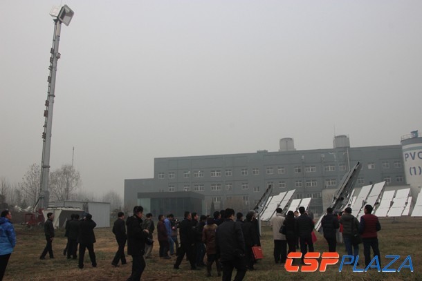 CSPPLAZA光熱發電網報道:12月12日,在河北涿州(zhou)開(kai)發區的聚(ju)(ju)燁(ye)光(guang)(guang)能(neng)技術有限公司(簡稱聚(ju)(ju)燁(ye)光(guang)(guang)能(neng))廠區內,聚(ju)(ju)燁(ye)光(guang)(guang)能(neng)組織聚(ju)(ju)光(guang)(guang)太陽能(neng)發電行(xing)業等共計100余人(ren)觀摩了其在涿州(zhou)建(jian)成的創新性的塔式聚(ju)(ju)光(guang)(guang)光(guang)(guang)伏(CSPV)示范項(xiang)目,這(zhe)是聚(ju)(ju)燁(ye)光(guang)(guang)能(neng)首次對外公開(kai)展(zhan)示其CSPV發電系統。