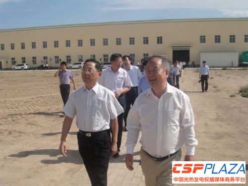 CSPPLAZA光熱發電網訊:8月24日下午,國家商務部副部長蔣耀平一行蒞臨我公司太陽能示范基地視察聚光太陽熱能示范項目及關鍵裝備研發情況,蘭州新區管委會主任李睿等領導陪同視察。