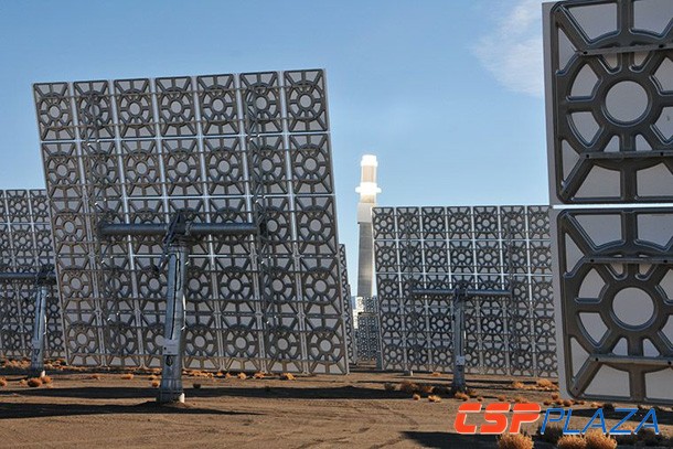 電站(zhan)共(gong)計安(an)裝10347臺定(ding)日鏡,單臺定(ding)日鏡的(de)采光(guang)(guang)面積約(yue)115.7平方(fang),寬約(yue)37英尺,高(gao)34英尺,重(zhong)8500磅,總(zong)采光(guang)(guang)面積約(yue)120萬平方(fang)米,反射鏡由Flabeg供貨。