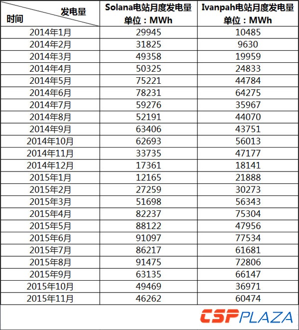 表(biao):Solana和Ivanpah兩大電站的月發電量統(tong)計