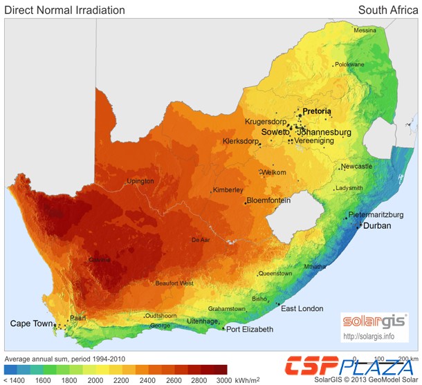 南非擁有世界上最優秀的太陽輻射資源,并且有足夠的空間來建設足夠多的光熱電站。而一個大型光熱電站的建設很有可能帶動所在地區規模化的經濟發展,并拓展本地供應鏈。如果電站在南非偏遠地區的選址也會大大有利于扭轉該偏遠地區惡化的經濟形勢。