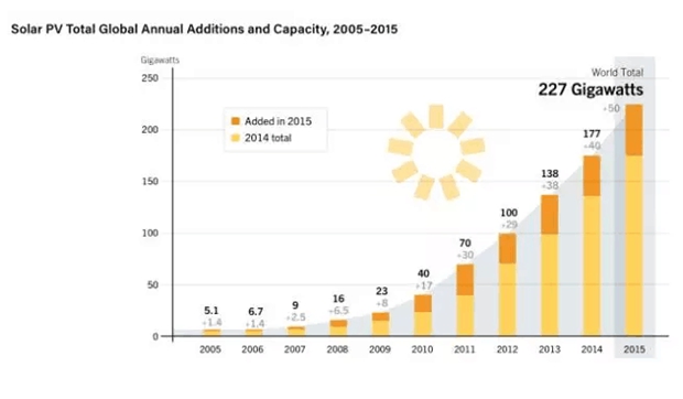 此外,在拉動可再生能源,尤其是風力發電和太陽能發電的增長方面,政府領導力仍繼續扮演著關鍵角色。截至2016年初,全球已有173個國家制定了可再生能源發展目標,146個國家出臺了支持政策。多個城市、社區以及企業率先展開迅速壯大的“100%可再生能源”行動,這在推動全球能源轉型中發揮著至關重要的作用。