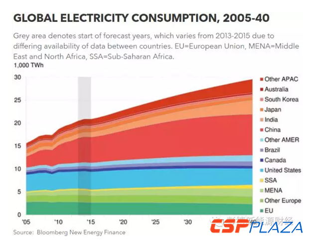 與業內其他相關預測報告相比,彭博新能源財經對全球電力消耗的預測低15-20%。