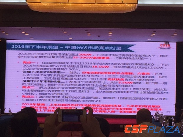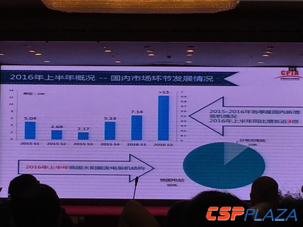如(ru)果(guo)用(yong)一(yi)個詞來形容上半(ban)(ban)年國內(nei)光伏(fu)行(xing)業(ye)發(fa)展情況(kuang),那就是熱(re)(re),甚至可以說有過熱(re)(re)跡象。雖然上半(ban)(ban)年光伏(fu)裝機規模官方統計數字還(huan)未出,但目前大的(de)數字來看是超過20GW。上半(ban)(ban)年如(ru)火如(ru)荼,下半(ban)(ban)年還(huan)會(hui)復制嗎?昨天記(ji)者(caixinenergy)參(can)加了光伏(fu)協會(hui)舉辦的(de)2016上半(ban)(ban)年光伏(fu)產業(ye)發(fa)展回顧與下半(ban)(ban)年展望研討會(hui),下面是來自記(ji)者的(de)一(yi)手(shou)觀點分享與數據。