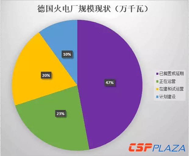 從2010年起,德國政府計劃在五年內新增建32個火電廠,裝機總容量共計2700萬千瓦。隨著國內能源改革力度的不斷加強,截止到2015年,僅有7座火電廠投入運行(共計620萬千瓦),16座火電廠的建設計劃被擱置或延期(共計1270萬千瓦),占據了總數的一半,剩下的9座火電廠中,1座在建,5座在試運行階段(共計540萬千瓦),3座剛通過審核(共計270萬千瓦)。