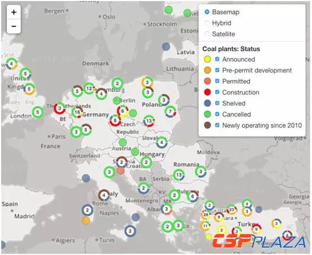 歐洲各國火電廠分布圖(數據(ju)來源(yuan):CoalSwarm)