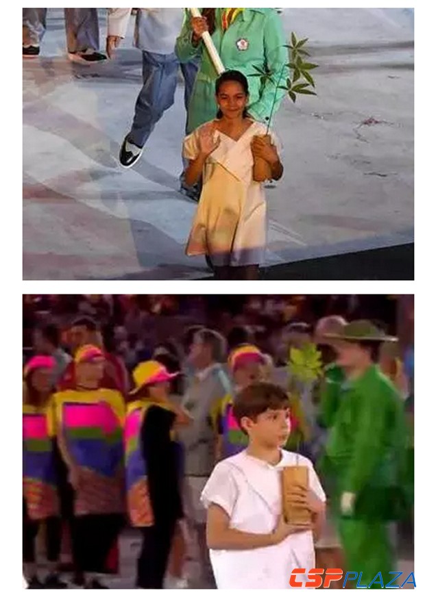 另外跟代表團旗手一起入場的還有一個小朋友,小朋友手里都拿著一盆植物,是亞馬遜雨林中瀕危的一些植物。