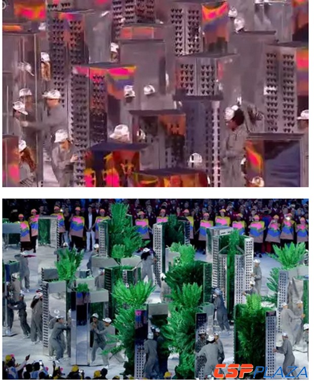 巴西人打開五環的方式別出心裁和種子也有關,入場運動員將手中的種子放入鏡面,隨著演員的轉動,燈光、音樂和狂歡中鏡面長成蔥郁大樹。
