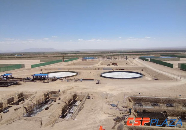 圖:在建中的中廣核德令哈50MW槽式光熱電站
