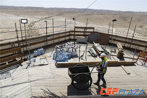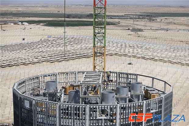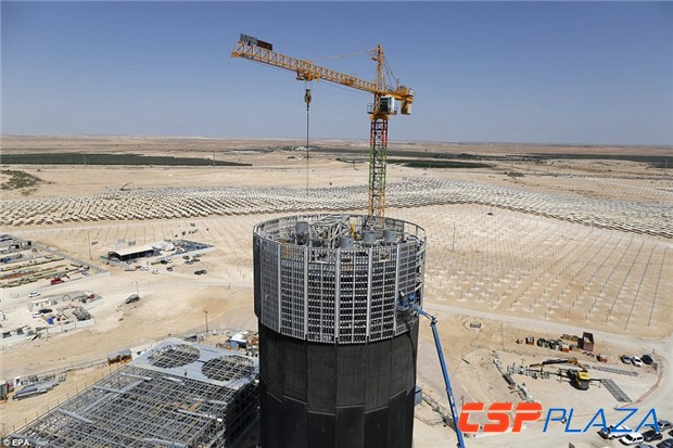 CSPPLAZA光熱發電網報道:裝機121MW的Ashalim1塔式光熱電站位于以色列在內蓋夫(Negev)沙漠,這座塔式光熱電站總占地面積為3.15平方公里,場地中央矗立著Ashalim塔,高240米——是世界上最高的集熱塔,塔底將安裝約5.5萬面鏡子,占地面積約400個足球場大小,這一浩大的工程構成了沙漠中的一幅奇景。