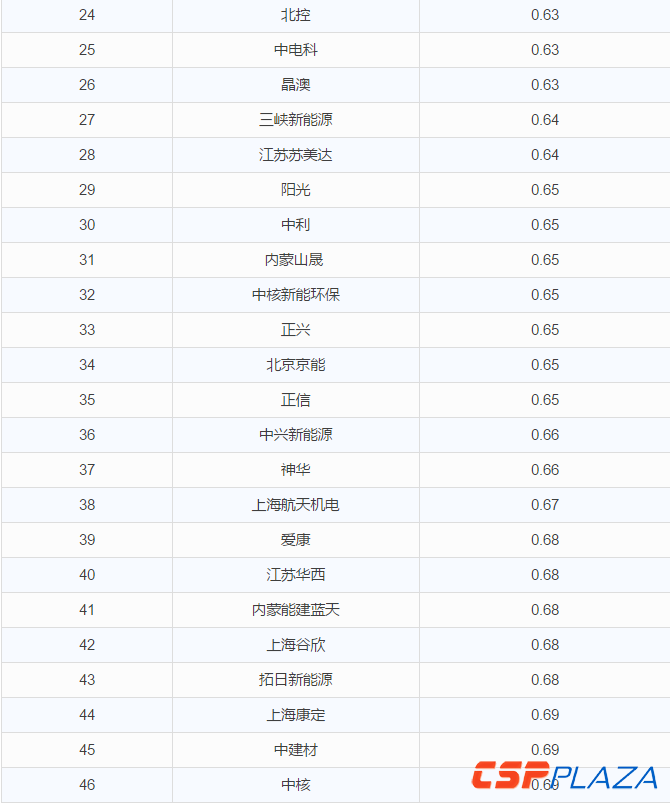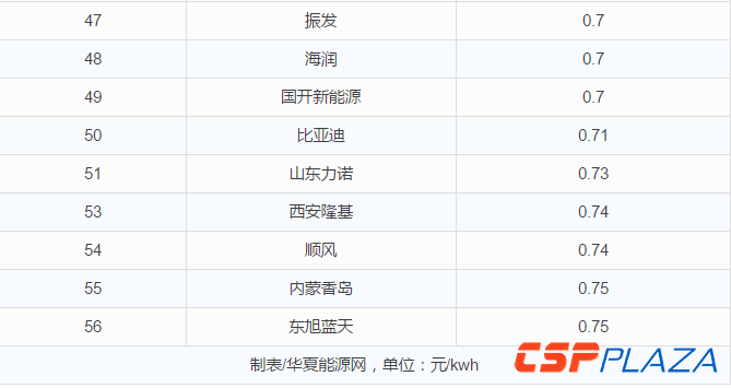 華夏能源網(微信號sinoergy_com)記者了解到,多達56家企業報送資料參與了投標,整體報價相比上個月山西陽泉、芮城又低了一個臺階,大多集中在0.61—0.68元區間范圍內。其中,報價最高為0.7元(海潤、振發),最低價為0.52元,由昌盛日電和華電報出。