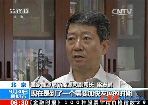 CSPPLAZA光熱發電網訊:9月30日,在央視新聞頻道《朝聞天下》欄目中,發布了一則《我國光熱發電開始啟動產業化》的簡訊,對于目前中國光熱發電行業的現狀進行了簡要報道,國家能源局新能源司副司長梁志鵬簡要介紹了中國首批光熱發電示范項目推進的目的和中國(guo)光熱發(fa)電行業的未來(lai)發(fa)展思路。