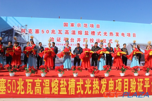 CSPPLAZA光熱發電網訊:10月12日上午11點18分,我國首個高溫熔鹽槽式光熱發電示范回路在甘肅阿克塞并網投運。