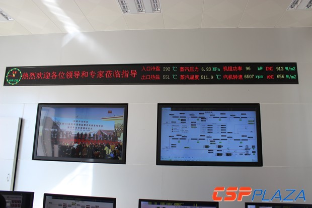 本網記者在控制室內看到,在瞬時DNI值為912W/㎡時,該系統產出的蒸汽壓力為6.83MPa,蒸汽溫度為511.9℃,熔鹽入口和出口溫度分別為292℃和551℃,運行表現良好。