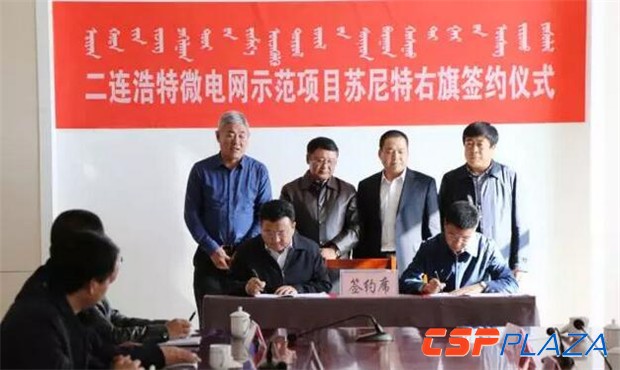 CSPPLAZA光熱發電網訊:11月4日,總投資95億元的二連浩特可再生能源微電網示范項目蘇尼特右旗1號、2號集群項目簽約儀式在蘇尼特右旗舉行,1號、2號集群各涉及到5萬千瓦光熱發電項目,分別由中電投蒙西能源有限責任公司和北京天潤新能投資有限公司負責開發。