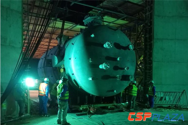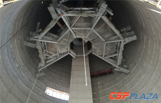 CSPPLAZA光熱發電網訊:據山東電建三公司方面消息,日前摩洛哥(ge)NoorⅢ光塔(ta)內部180m平臺及入口熔(rong)鹽罐吊(diao)裝工(gong)作順利(li)完成。