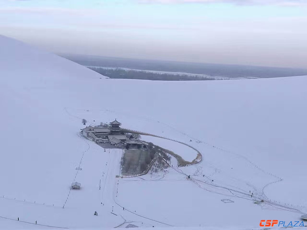 鳴沙山上,月牙泉畔,呼吸著新年的陽光,在皚皚白雪涂妝的沙漠之地,寫下2017年對光熱行業的第一聲問候。