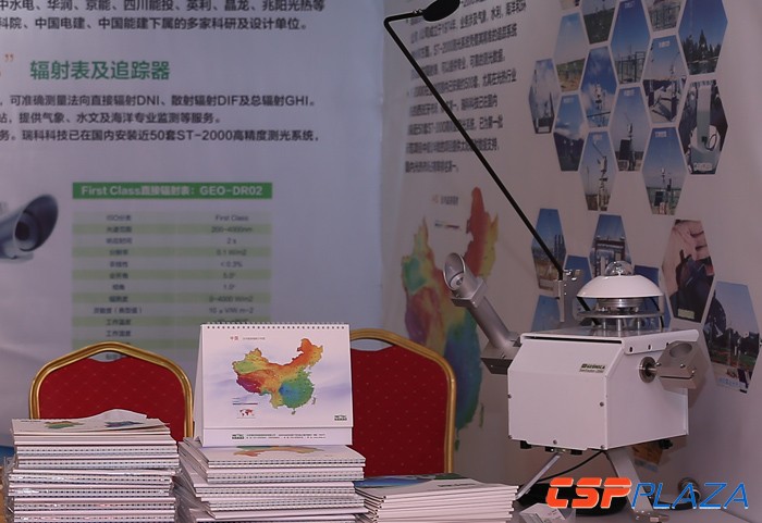B6展位的北京瑞科同創能源科技有限公司是國內太陽能資源觀測評估領域專業的技術服務商,其在本次會議上展出了其先進的ST-2000追蹤式太陽輻射觀測系統及SolarGIS太陽能衛星模擬數據庫軟件。ST-2000追蹤式測光系統為西班牙Geonica公司產品,是一款全自動雙軸追蹤式測光系統,適用于任意位置,可通過直接觀測得到法向直接輻射DNI。SolarGIS是由歐洲Geo Model Solars.r.o.開發的高分辨率高精度衛星模擬數據庫,可提供全球各地的太陽輻射模擬數據。