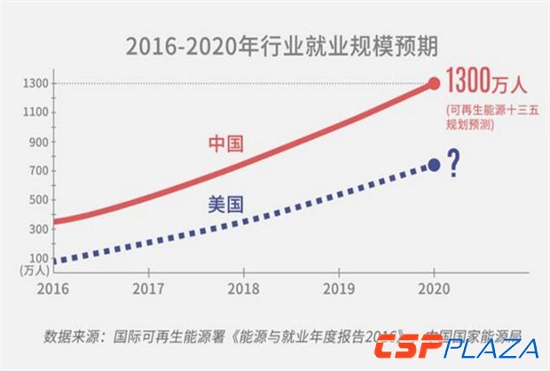 有關中國近年的綠色發展,專注環保的非營利性組織中外對話(China Dialogue)在會前發布相關分析:在可再生能源領域,中國創造了更多的就業崗位。2015年中國可再生能源領域就業總數為350萬人,此一數字在美國為76.9萬人。按照測算,中國可再生能源行業的就業規模在2020年將升至1300萬人,而在美國則將升至100萬人。