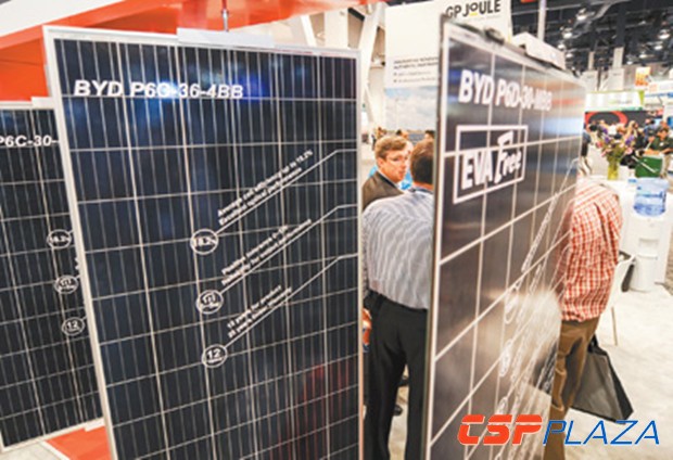圖:中(zhong)國企業比亞(ya)迪在(zai)展(zhan)會上推介(jie)太(tai)陽(yang)能產品