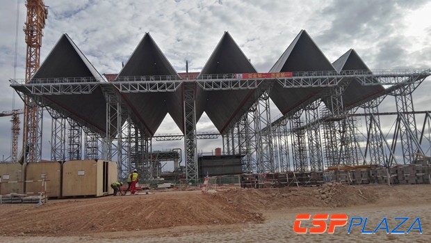 圖:摩洛(luo)哥NOORII(200MW)光熱電站(zhan)在建(jian)中(zhong)的Inair空冷島