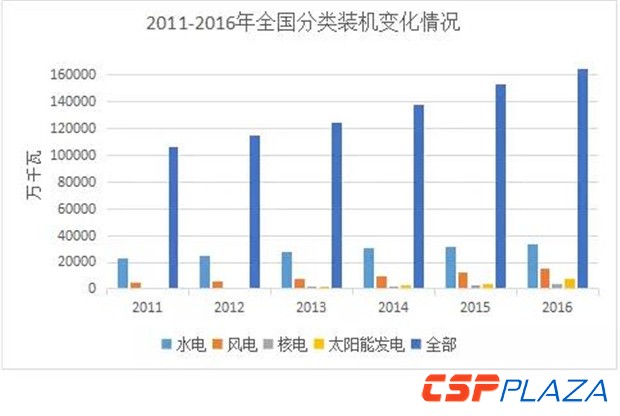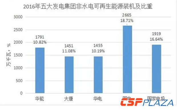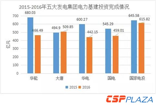 2016年五大發電集團總裝機:華能第一,16554萬千瓦;華電第二,14281萬千瓦;國電第三,14248萬千瓦;大唐第四,13090萬千瓦;國家電投第五,11663萬千瓦。