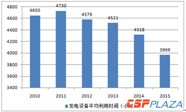 圖:2010-2015年我國的發電設備平均利用小時數呈下降趨勢(數據(ju)來源:公開資料整理)