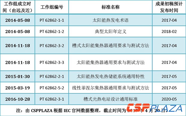 IEC/TC117現有25個成員國,其中具有投票權的P成員國14個,O成員國11個,秘書處設在西班牙。目前該技術委員會設有7個項目工作組,負責光熱發電行業不同領域的標準起草工作。