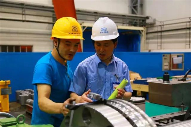 為確保最后的總裝工作的萬無一失,事業部專門安排了總裝四班擔任裝配任務,這是一支敢為人先、敢打硬仗的隊伍,在公司高技能人才、班長李軍的帶領下,班組成員團結一致,在周期要求緊,裝配工作量大的情況下,攻克了首次三軸同裝精度要求高,裝配難度大等困難,不斷根據配套情況調整裝配方案,及時會同設計、工藝、質量等解決裝配工作中出現的問題,在工作中不斷總結并積累經驗,鍛煉提升隊伍的技能水平,確保了首臺光熱發電機組順利完成蓋缸。