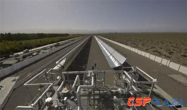 圖:800米測試平臺高溫熔鹽槽式光熱發電測試平臺