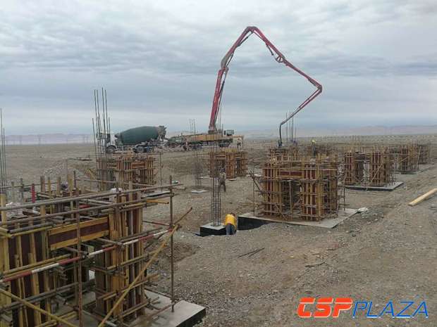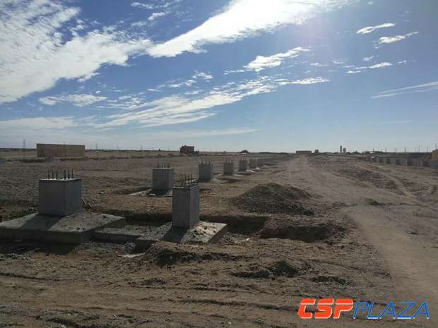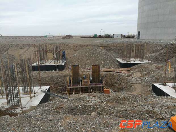 該電站于2014年開始前期工作,2015年底舉行開工奠基儀式,2016年11月份進入全面建設階段,目前正在進行定日鏡基礎的澆灌工作,鏡(jing)場樁(zhuang)基累計(ji)成孔4065個(ge),成樁(zhuang)3682個(ge),承臺367個(ge)。廠(chang)房等基礎設施建設,截止到7月26日,吸熱塔混凝土已澆筑至132.65米(mi),計(ji)(ji)劃(hua)(hua)于今年(nian)八(ba)月(yue)底完成(cheng)封(feng)頂(ding)。同時(shi)所有的定日鏡安(an)裝也計(ji)(ji)劃(hua)(hua)于2018年(nian)5月(yue)份(fen)完成(cheng)。汽(qi)輪機預(yu)計(ji)(ji)2018年(nian)3月(yue)份(fen)到貨,2018年(nian)6月(yue)份(fen)完成(cheng)汽(qi)輪機扣缸,預(yu)計(ji)(ji)2018年(nian)8月(yue)并網發電(dian)。