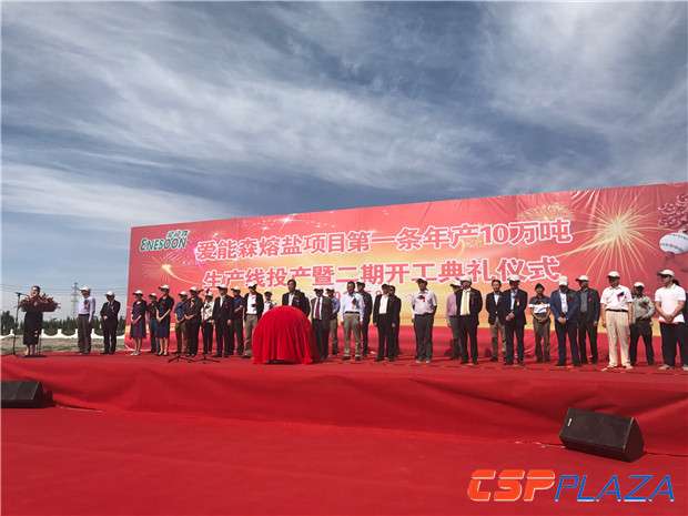 2017年8月5日(ri),在各(ge)級政(zheng)府、行(xing)業專家及社會各(ge)界的關懷與支(zhi)持(chi)下,愛能森第一條(tiao)年產(chan)10萬(wan)噸(dun)(dun)熔(rong)(rong)鹽生(sheng)(sheng)產(chan)線暨(ji)全球第一條(tiao)擁(yong)有自主(zhu)知(zhi)識產(chan)權的熔(rong)(rong)鹽智能化生(sheng)(sheng)產(chan)線在德令哈(ha)落成投產(chan)。為答謝(xie)各(ge)界對愛能森一直以來的指(zhi)導、關心與支(zhi)持(chi),愛能森熔(rong)(rong)鹽項目第一條(tiao)年產(chan)10萬(wan)噸(dun)(dun)生(sheng)(sheng)產(chan)線投產(chan)暨(ji)二(er)期開(kai)工(gong)典禮在德令哈(ha)工(gong)業園(yuan)區隆重舉(ju)行(xing)。