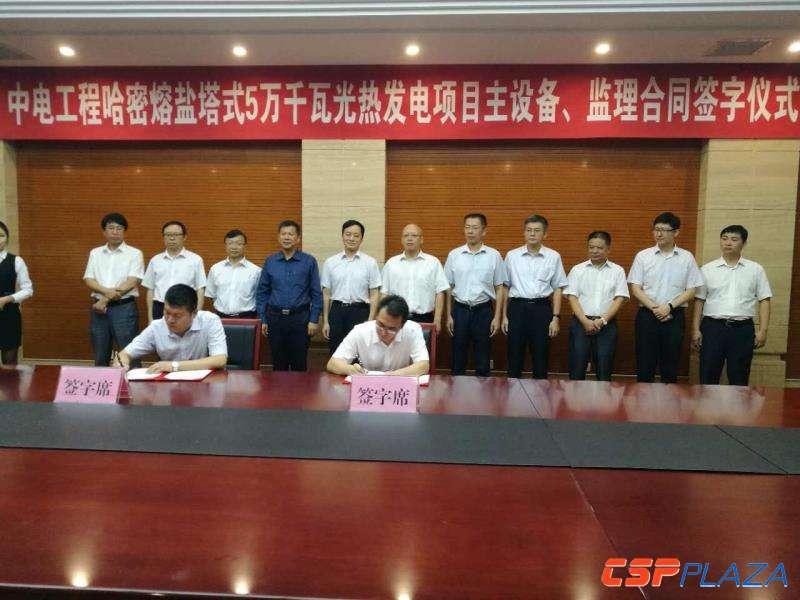 CSPPLAZA光熱發電網訊:8月22日,中電工程哈密熔鹽塔式50MW光熱發電項目的主設備與監理供貨合同在京正式簽訂,據悉,此次簽署的合同包括聚光集熱系統、蒸汽發生器和汽機島、監理、發電機組等多個合同包。