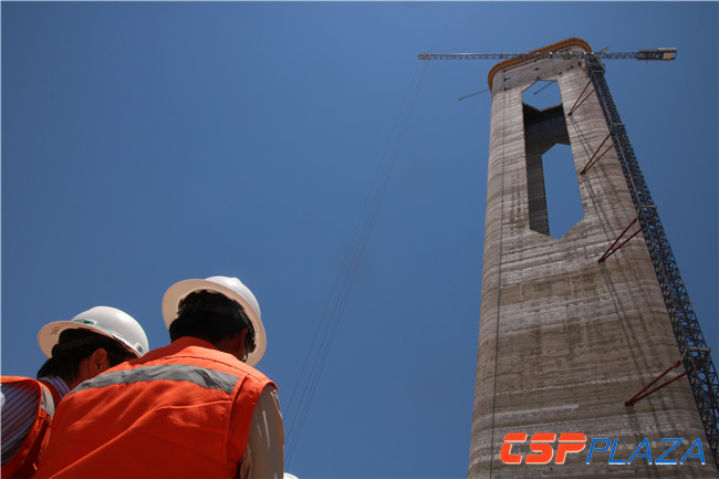 圖(tu):建(jian)設中(zhong)的110MW塔式光熱(re)發電系統