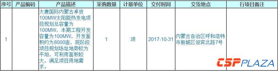 CSPPLAZA光熱發電網訊:9月3日,內蒙古大唐國際卓資新能源有限責任公司100MW光熱發電項目發布其初可研公(gong)開(kai)詢價公(gong)告。據公(gong)告顯示,此次(ci)報價截止時間為2017年(nian)9月7日8時30分,交貨時間為2017年(nian)10月31日,交貨地址(zhi)位(wei)于內(nei)蒙古(gu)自治區(qu)呼和浩(hao)特市新城區(qu)迎賓北(bei)路7號(hao)。