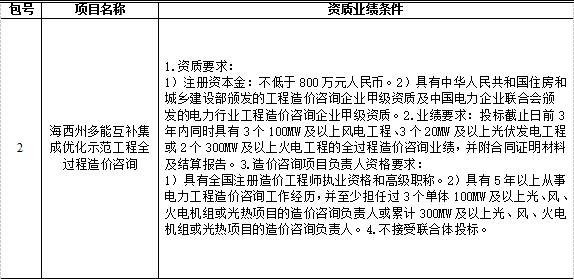 2)業績要求:投標截止日前3年內同時具有3個100MW及以上風電工程、3個20MW及以上光伏發電工程或2個300MW及以上火電工程的全過程造價咨詢業績,并附合同證明材料及結算報告。