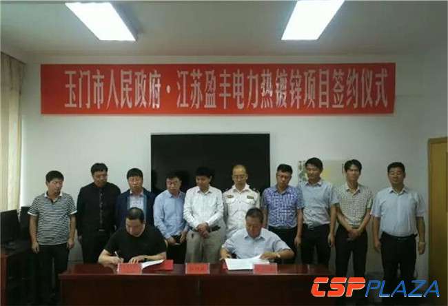 9月4日上午,玉門市人民政府(fu)與江蘇盈豐電力裝備股份有(you)限公(gong)司成功簽約(yue)熱鍍鋅項目。