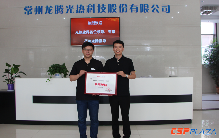作為CSPPLAZA平臺會員單位,俞科代表龍騰光熱在本次調研活動中接受了由CSPPLAZA主編頒發的會員單位牌匾。