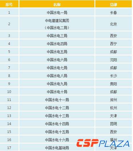 1)中國水電(SINOHYDRO),中國水利水電建設集團公司,前身為燃料工業部水力發電建設總局,后幾經合并與拆分,2002年12月改組為中國水利水電建設集團公司,2009年11月整體改制并控股創立中國水利水電建設股份有限公司,2011年成為中國電建全資子公司。總部北京。