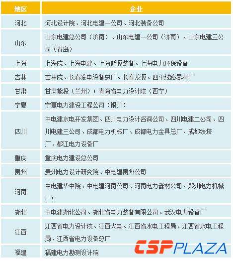 14個省(市、區)電力勘測設計、工程、裝備制造企業系統企業: