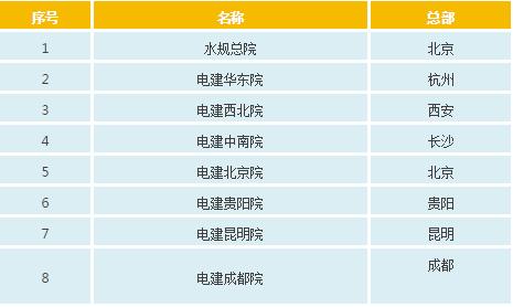 ?四家輔業集團:中國電力工程顧問集團(下屬六大區域設計院)、中國水電工程顧問有限公司、中國水利水電建設集團公司、中國葛洲壩集團公司。