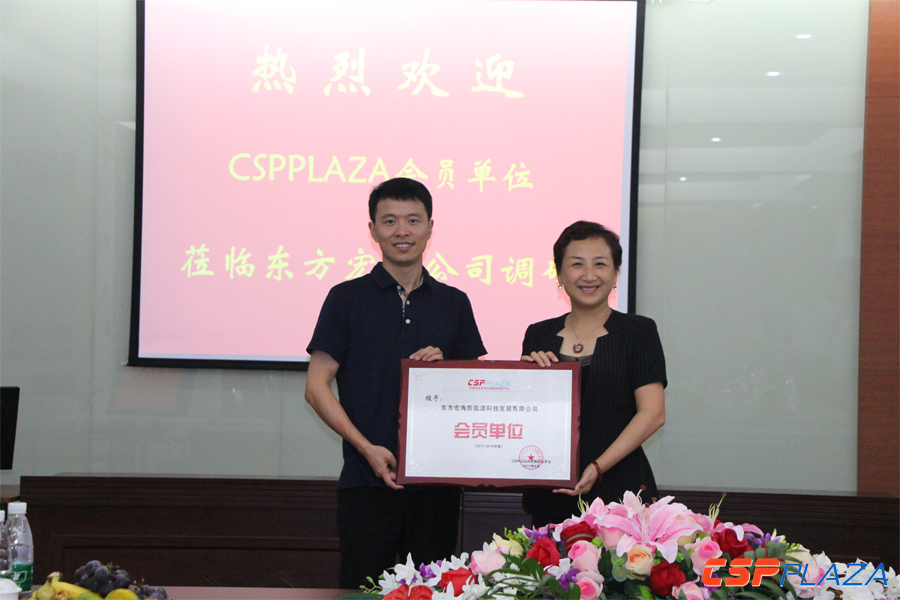 作為CSPPLAZA平臺會員單位,項紅代表宏海新能源在本次調研活動中接受了由CSPPLAZA主編頒發的會員單位牌匾。