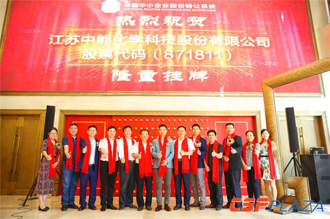 CSPPLAZA光熱發電網訊:2017年9月8日,江蘇中能化學科技股份有限公司在全國中小企業股份轉讓中心(俗稱“新三板”)舉行了(le)隆重(zhong)的(de)掛牌儀式(shi)(股票簡稱:中(zhong)能(neng)科技,股票代(dai)碼:871811,總股本4500萬股,主辦券(quan)商(shang)為(wei)川財證券(quan))。