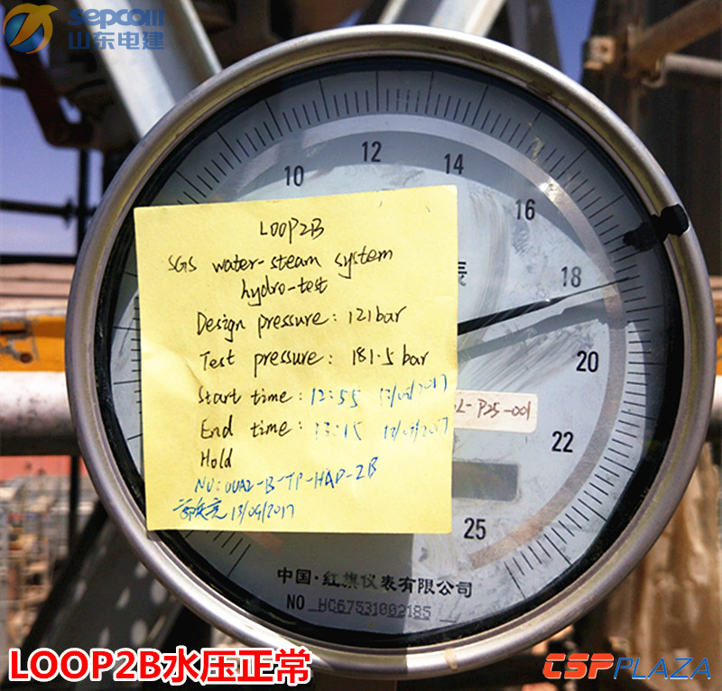 2017年9月13日,摩洛哥努奧二期蒸汽發生器汽水系統LOOP2B水壓試驗一次成功,所有壓力容器設備完成摩洛哥當地認證,所有管道、閥門、焊口、支架均無異常情況,標志著努奧二期汽水系統水壓試驗全部完成。