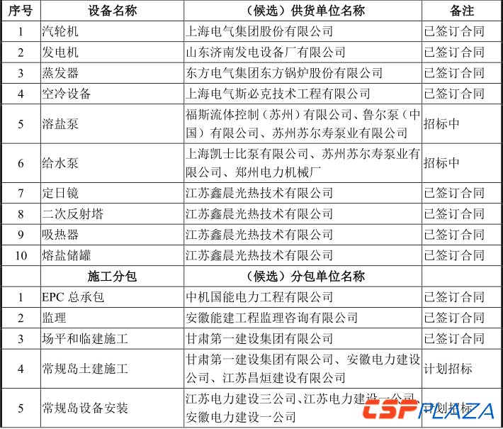 上述所提回復中,天沃科技詳細披露了玉門鑫能50MW熔鹽塔式光熱發電項目的投資構成明細、最新建設進度、招投標進度(公布了相關主要建設單位、主要設備提供商和運營單位)、項目分步推進計劃以及擬募集的157,169萬元的詳細分配計劃。CSPPLAZA對此進行了整理匯總,以饗讀者:
