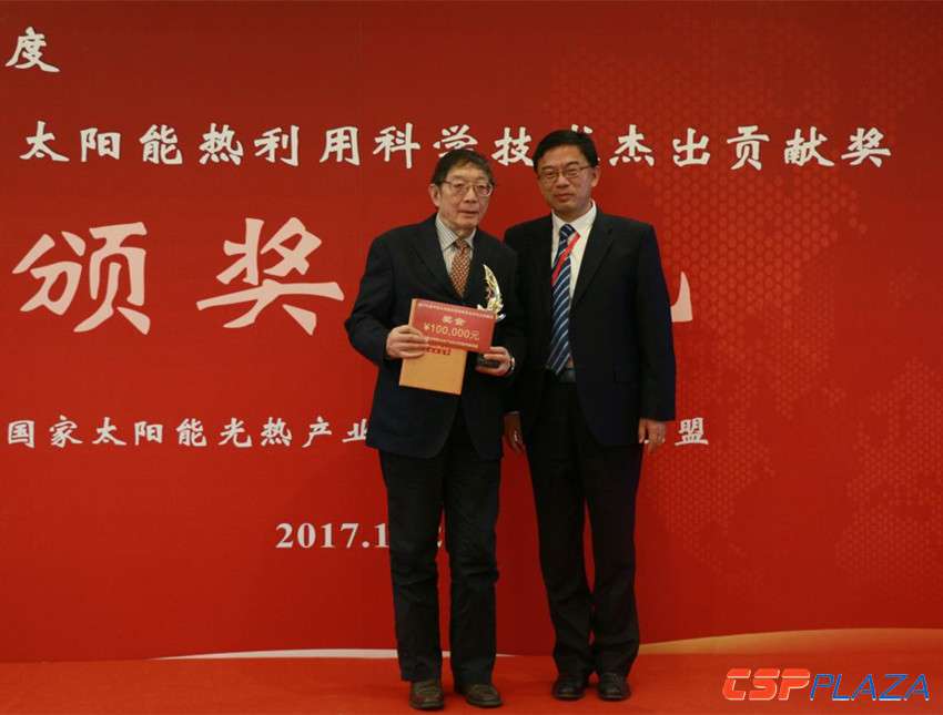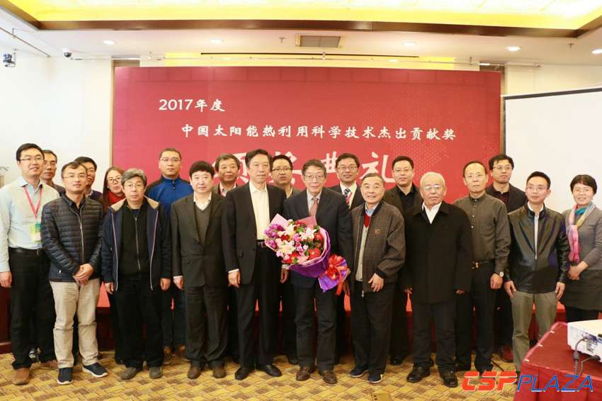 CSPPLAZA光熱發電網訊:11月2日,由國家太陽能光熱產業技術創新戰略聯盟(以下簡稱國家太陽能光熱聯盟)主辦的“2017年度中國太陽能熱利用科學技術杰出貢獻獎”頒獎典禮在京舉行。北京工業大學教授馬重芳憑借在中國太陽能熱發電熔鹽儲能領域的數十年耕耘榮獲該獎項。出席典禮的包括各地學者、嘉賓以及媒體代表等,共計80余人。