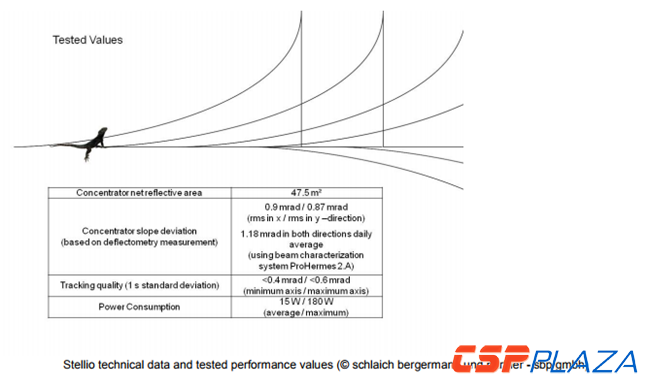 Stellio的創新之處主要體現在以下三方面:1)配置斜率驅動器,能更好地追蹤太陽運行路徑,同時其堅固的鋼結構是實現低成本且高精度光學質量保證的關鍵;2)專用控制軟件“了解”結構變形等情況,例如線性驅動的伸長取決于拉力,將其考慮進去并進一步決定準確的驅動指令;定日鏡幾乎是圓形的,可以最大限度地減少陰影及遮擋,形成緊湊的鏡場布局。
